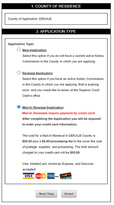 Go to: https://apps.gsccca.org/NotaryApplication/; select DeKalb County; select Mail-In Renewal Application; complete all relevant fields; print completed application (6 pages total).