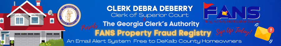 On February 24, 2014, Clerk Debra DeBerry debuted an online Property Fraud Registry Alert System. The system was designed to provide property owners with the ability to register properties and receive notifications when certain real estate and personal property records are filed with, indexed, transmitted or recorded on their real property. This system gave DeKalb property owner an extra level of assurance that a fraudulent filing would not go unnoticed.